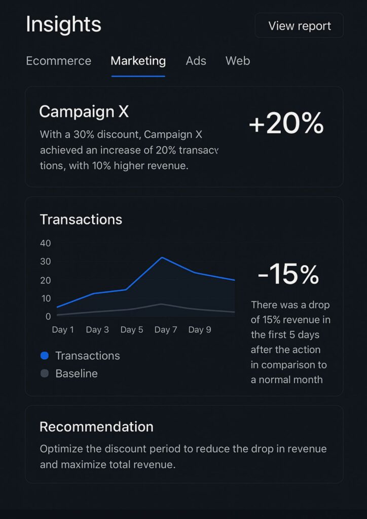 Cijfers vertellen je wát er gebeurt, maar niet wáárom of wat je moet doen. Ons systeem vertaalt de data direct naar heldere adviezen in gewone taal. Geen rijen grafieken of moeilijke dashboards, maar praktische tips die je meteen kunt gebruiken.