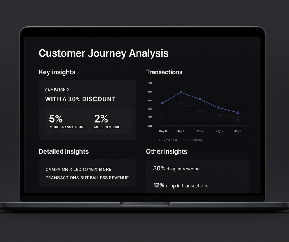 Krijg een compleet beeld van de hele customer journey, van eerste klik tot aankoop en terugkerende klant. Onze AI analyseert marketing-, website- en backenddata en zet dat om in duidelijke adviezen. Zo zie je direct waar klanten afhaken en waar kansen liggen, zonder zelf eindeloos te hoeven graven in dashboards en spreadsheets.